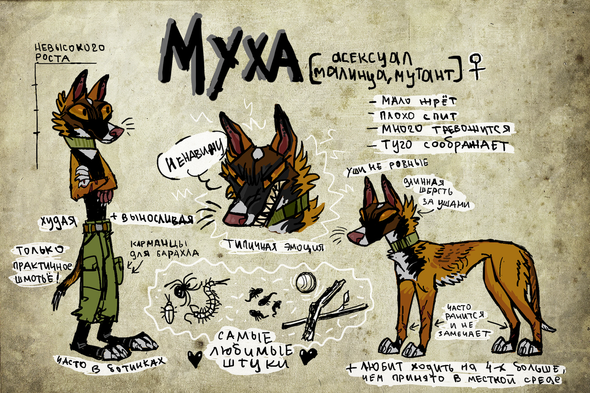 Оо, так даже лучше!) Мужественные женщины в моём сердешке имеют особое место - всегда люблю и восхищаюсь. У меня есть брутальная мощная женщина-собака, по типу немецкой, какие были в питомниках ГДР (чёрно-бурые такие, с пепельным немного в окрасе, но у моей без пепельного). Тоже вполне себе довольна своим полом. Тут она не мелькала, правда. Как-нибудь выложу. А у Мухи вот с принятием своего пола проблемы и всё детство считала себя парнем, ибо "лучше быть тупым пацаном, чем тупой деффкой". Сейчас же она выросла и не относит себя ни к одному из полов. Ну и это ей не важно, ибо она ещё вдобавок асексуал и аромантик.