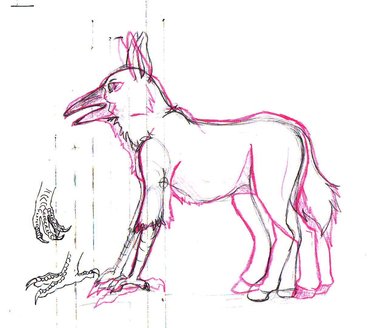 super fast redlines whee! My printer also pooped ink all over the page. :( I agree on the deeper chest comment. Other things I did: moved the eye back from the beak a wee bit, made the front legs a bit more floofy and full, longer toes!, repositioned the legs mostly because the one closer to the viewer seemed too much forward/unbalanced. I personally like drawing the back legs "staggered," but I also drew them next to each other if you rather do that. And now that I look at it again, the body overall could be a smidge longer. Hope that helps!