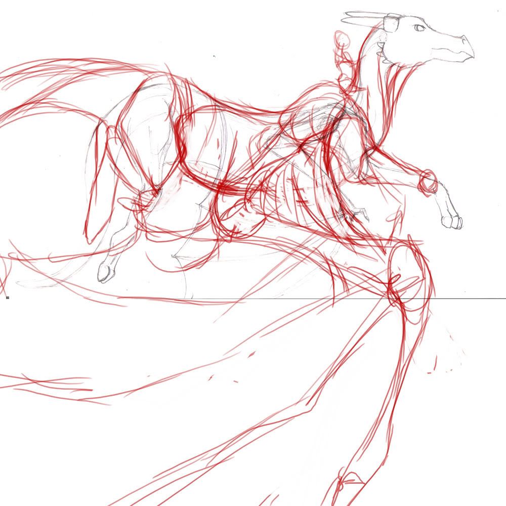 I'm working on a dragon in flight, I want the wings down because someone will be on his back and I want you to see them. I really need help with the muscles on this guy though and can't figure out the other wing placement.