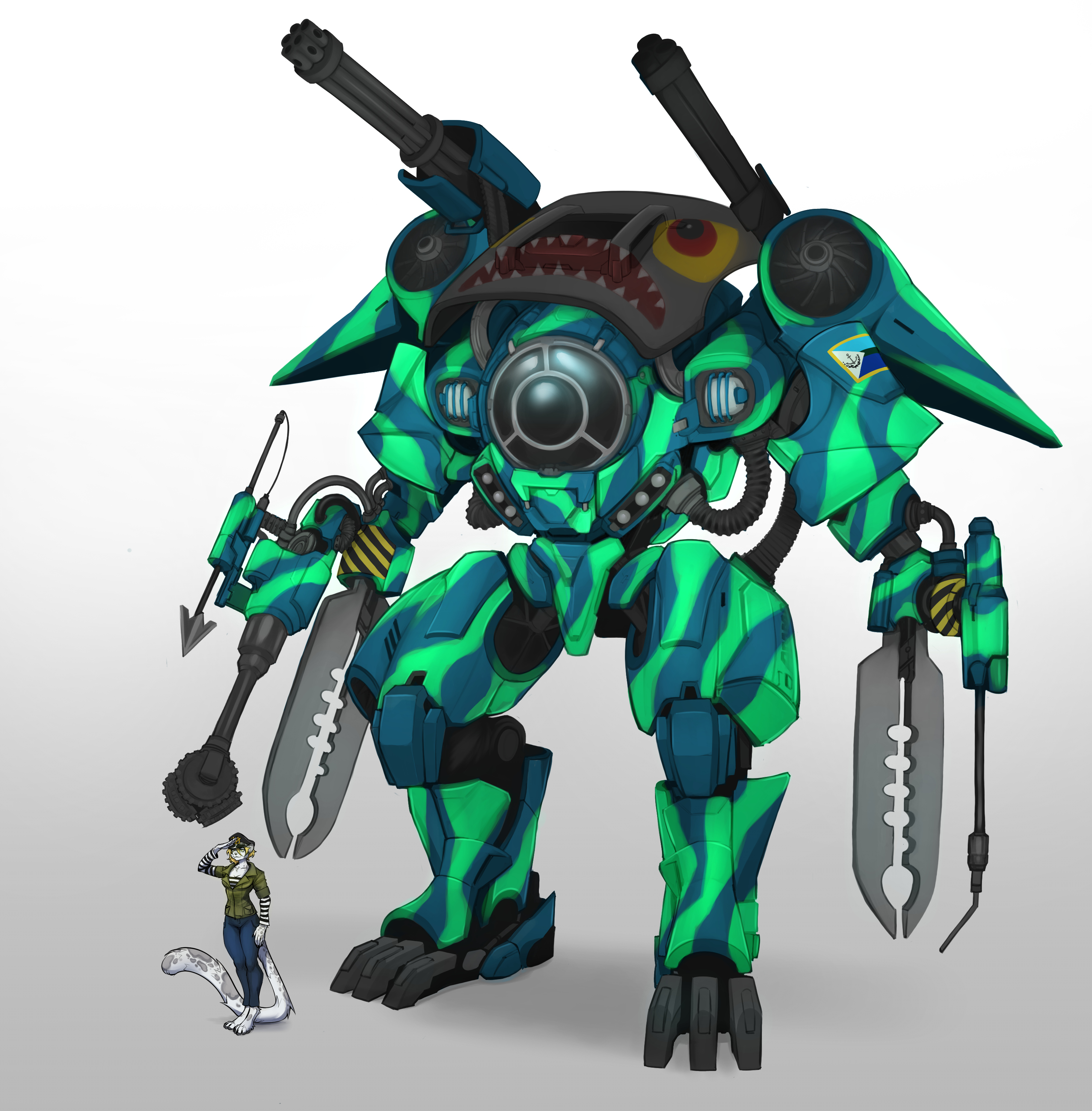 Another commission for wildfire, starring her namesake atop a large aquatic mecha.