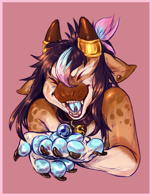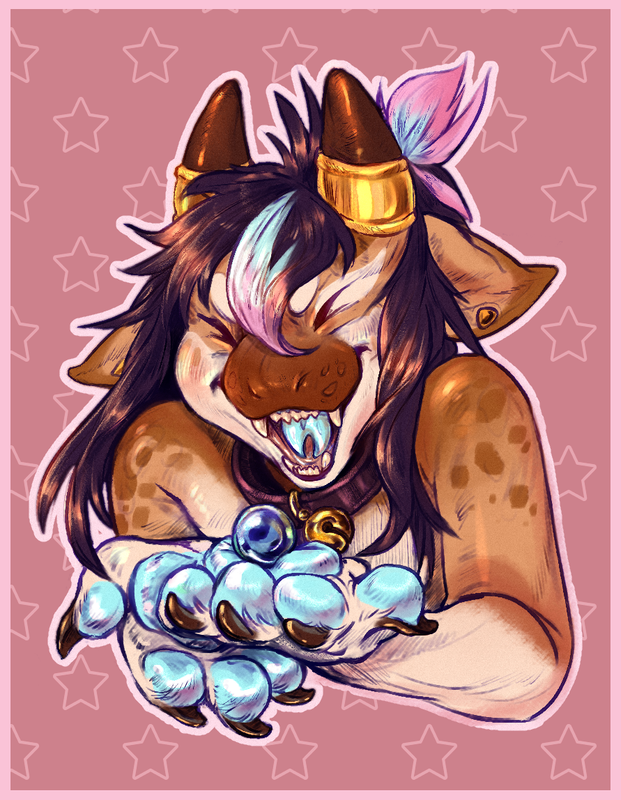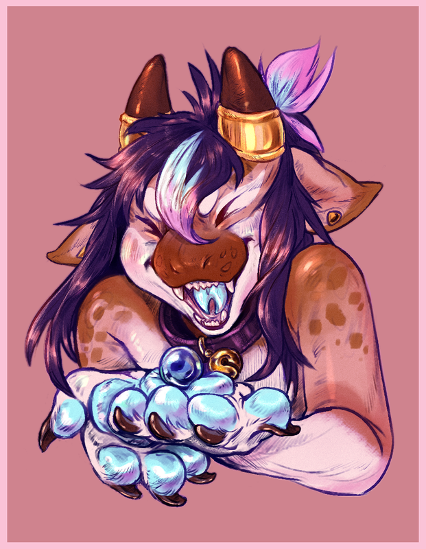 bust halfbody headshot lizard tongue pearl marble excited cute long hair paw paws pawpads soft stars painting sketch doodle horns piercing teeth claws adorable happy anthro feralReport this content