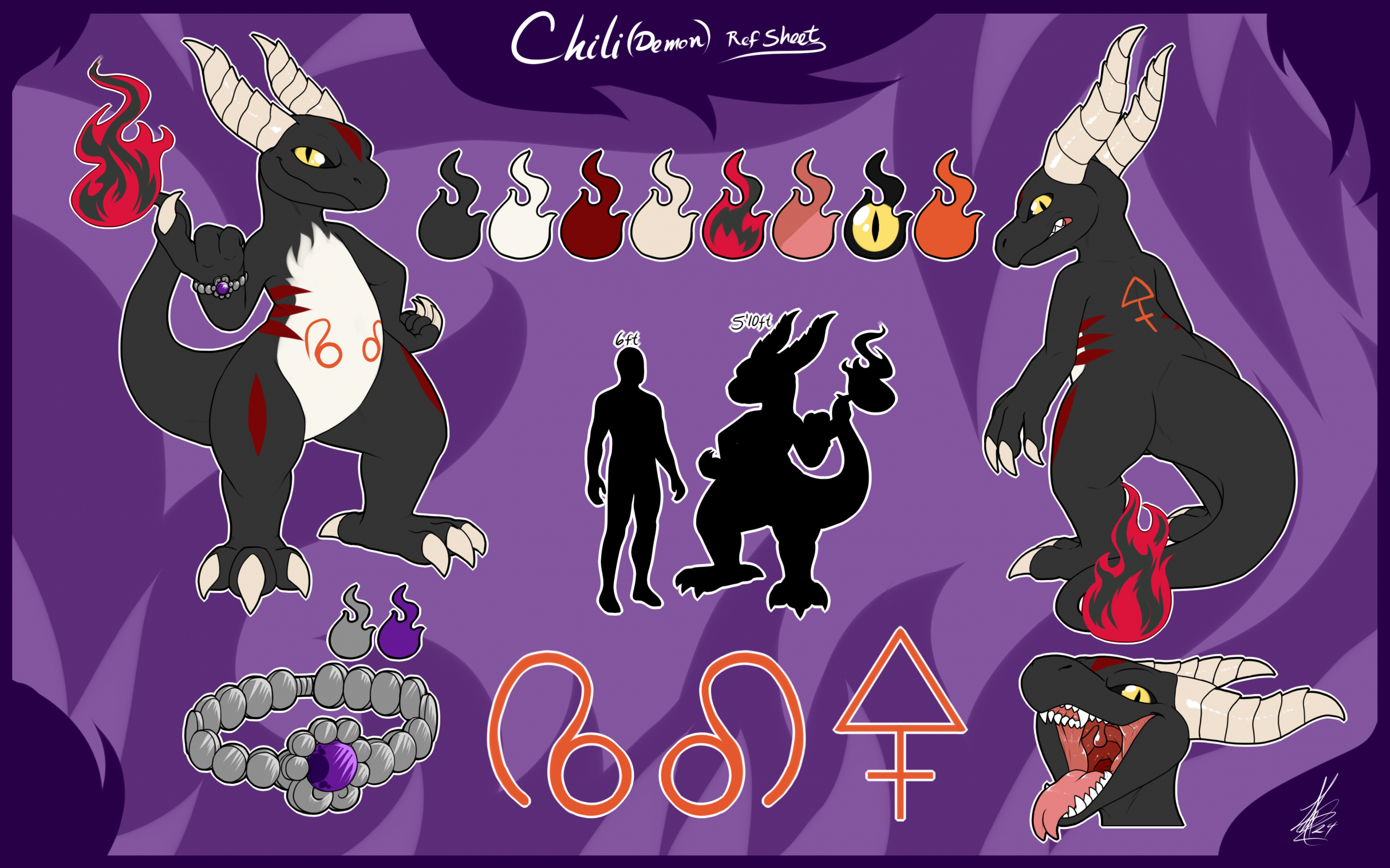 A..."What If" sort of scenario we'll call it. Due to getting in over his head for a variety of reasons, Chili ends up turned into a demon, just in time for spoopy month! While he's still his old self, newfound power has gone to his head, not helped by demonic influence so he's far more mean spirited and conniving than usual. His bracelet is a piece he picked up off his first prey after transforming, and through some tweaks he's able to use it to hold onto the souls of those he manages to devour, which he gradually absorbs for a power boost.