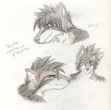 I've had the idea for a while to add more markings. His tan underfur is exactly the same, there are just darkbrown markings added. And I got bored of his hair the way it was so I changed it up alittle. ^^