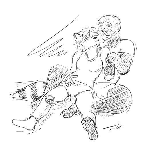 Whee, its neat how quick he just draws. I really love how this came out. Especially her facial expression. Heh, those two really do love each other. Anyway, I am not sure if its mature or not if they are in their undies. BUT, since there's nothing hinting to be sexual, heh, I think general is fine. Oh well......I am a sap. But i like it. :-P