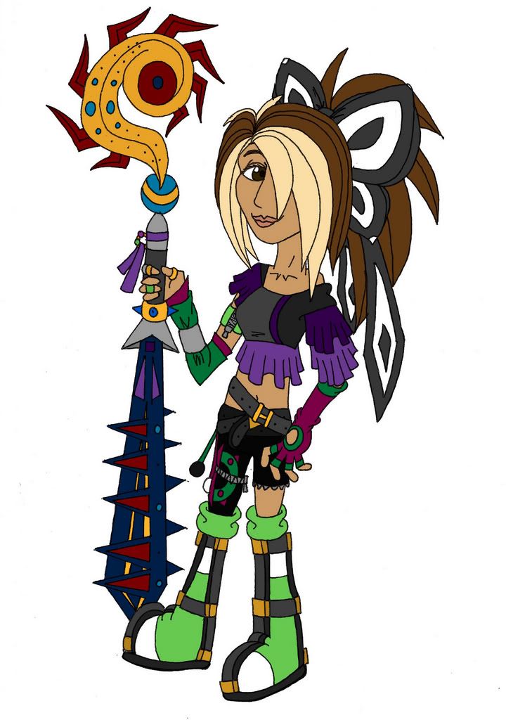 then i made my own final fantasy style (idea from final fantasy X style) and i came across it like....2 days ago xD i then made a few adjustments, like sort out her hair and face (eyes, lips, nose) I then put it one photoshop, coloured it and used dodge and burn to shade and highlight, though it was really lazy and i couldn't be bothered after, so i kinda gave up with the shading xD