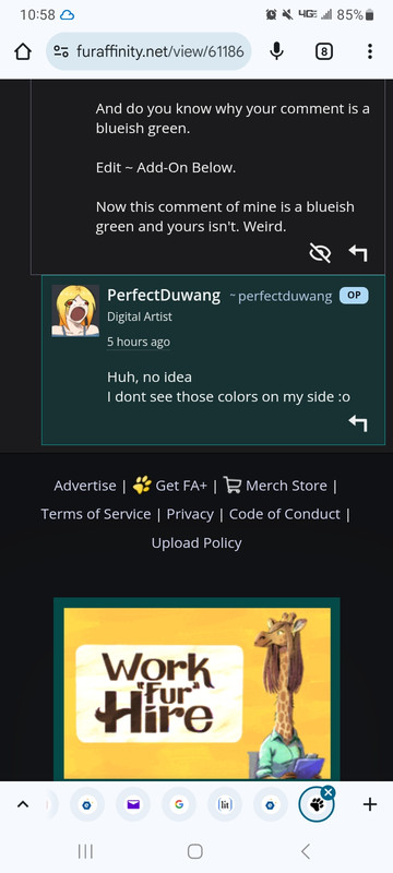 Now this comment of mine is a blueish green and yours isn't. Weird.