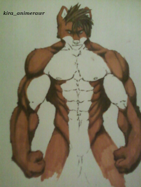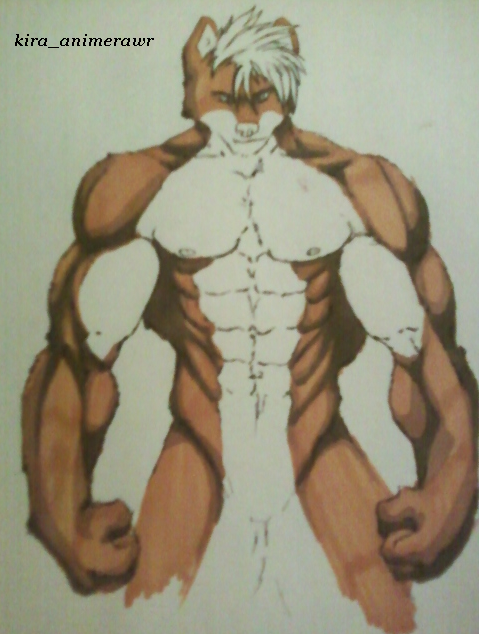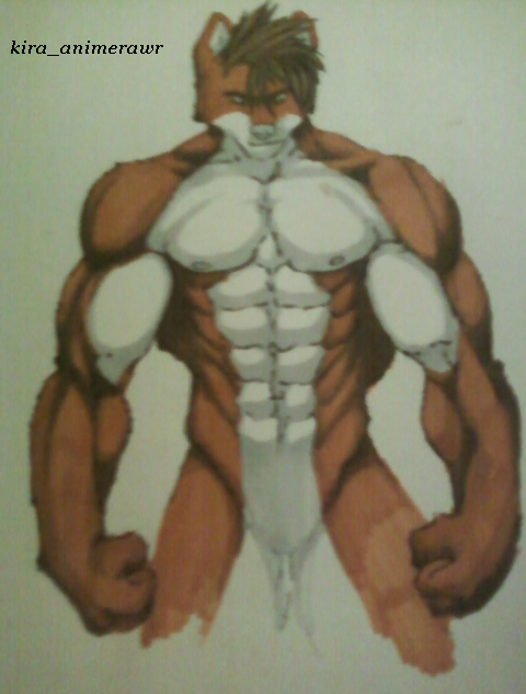 4) Use the next darker color to create shadows, you can use alot of this color because the darker shadows will bring in the creases of his muscles more. I think I used the color Light Tan.