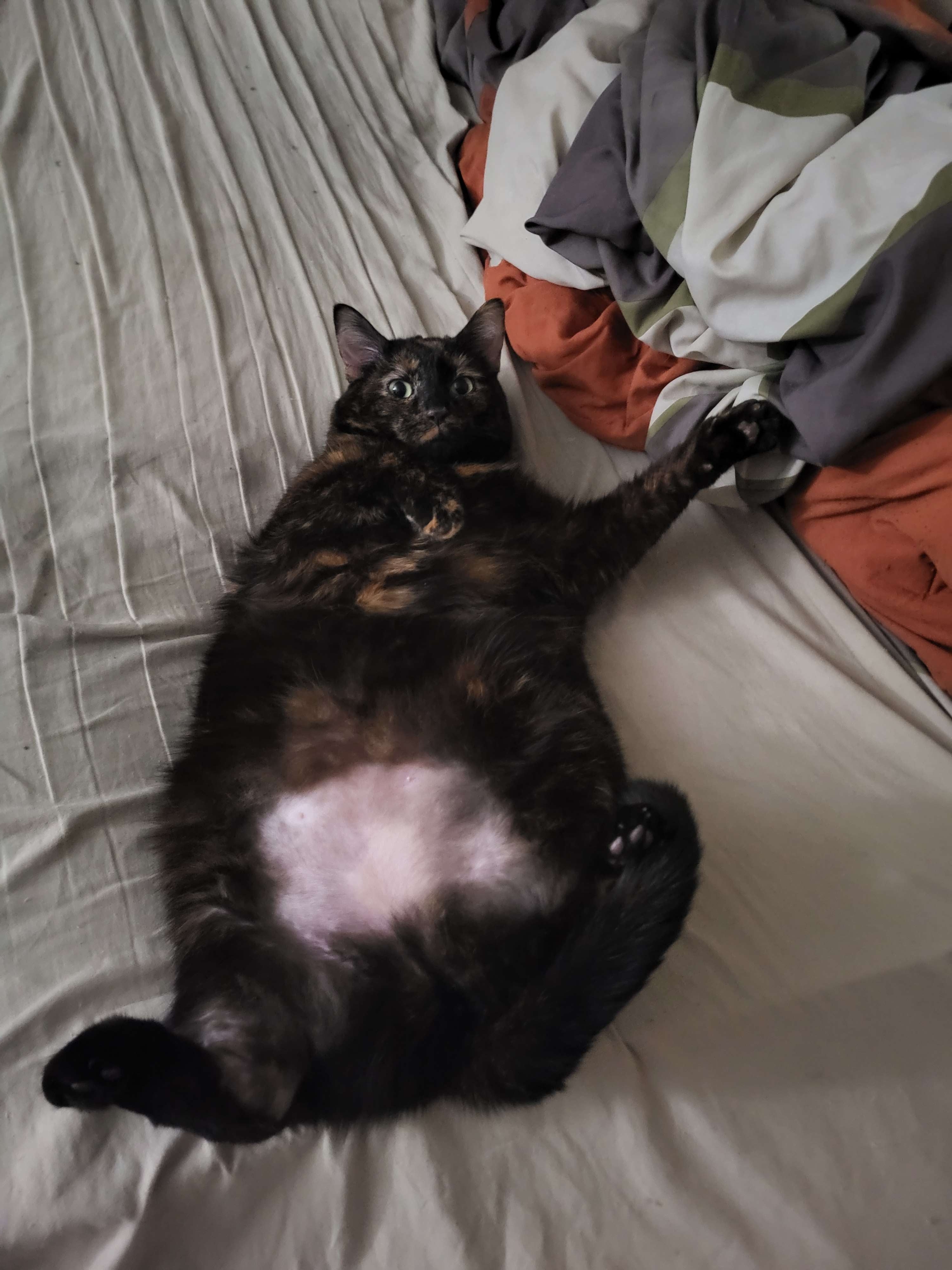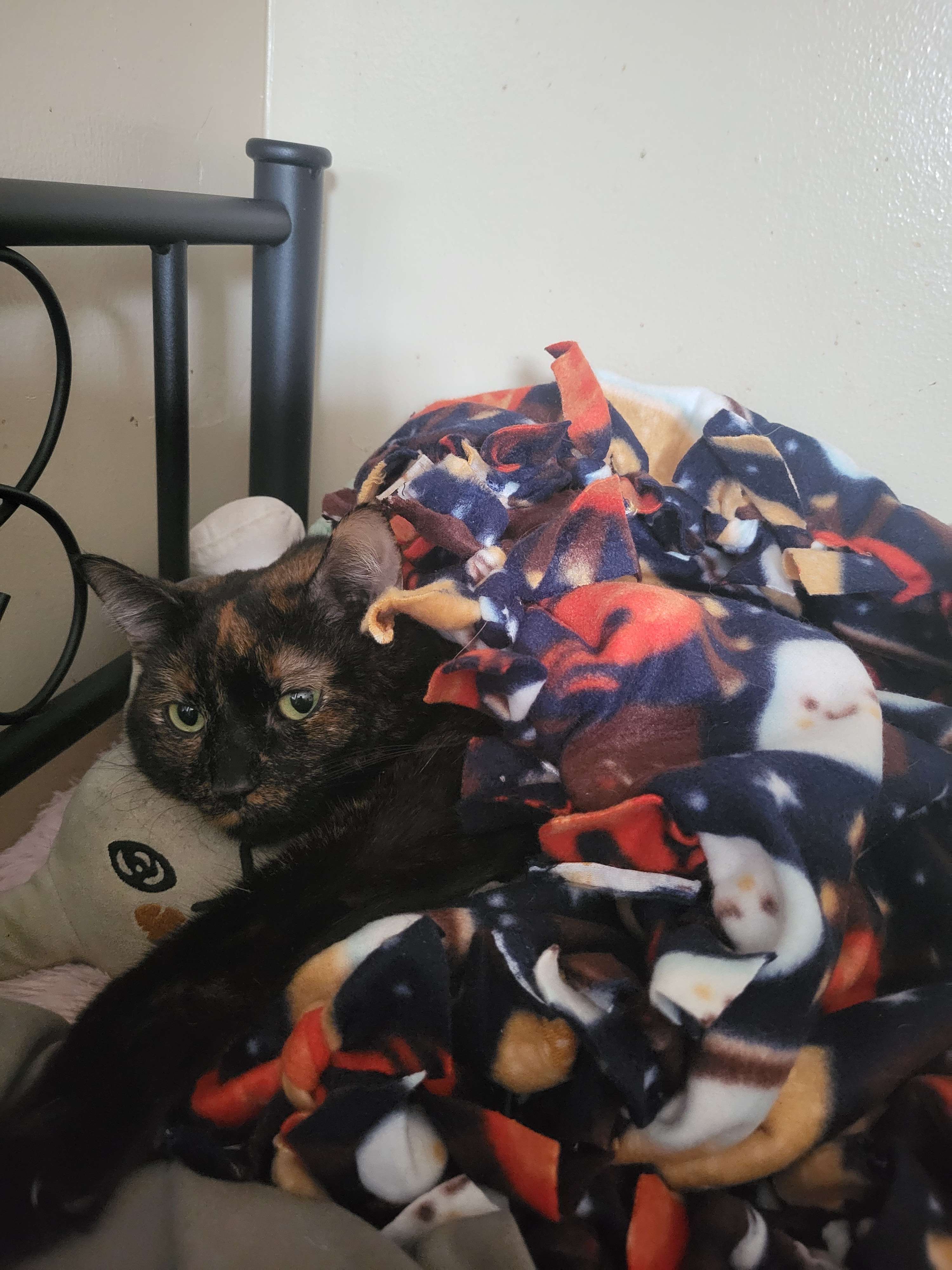 Ha loaf, I thought she was going to be a literal turtle XD I didn't know that pattern was referred to as a tortie