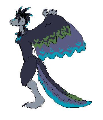 Think lizard tail with feathers covering it, and swoopy like a peacock. <3