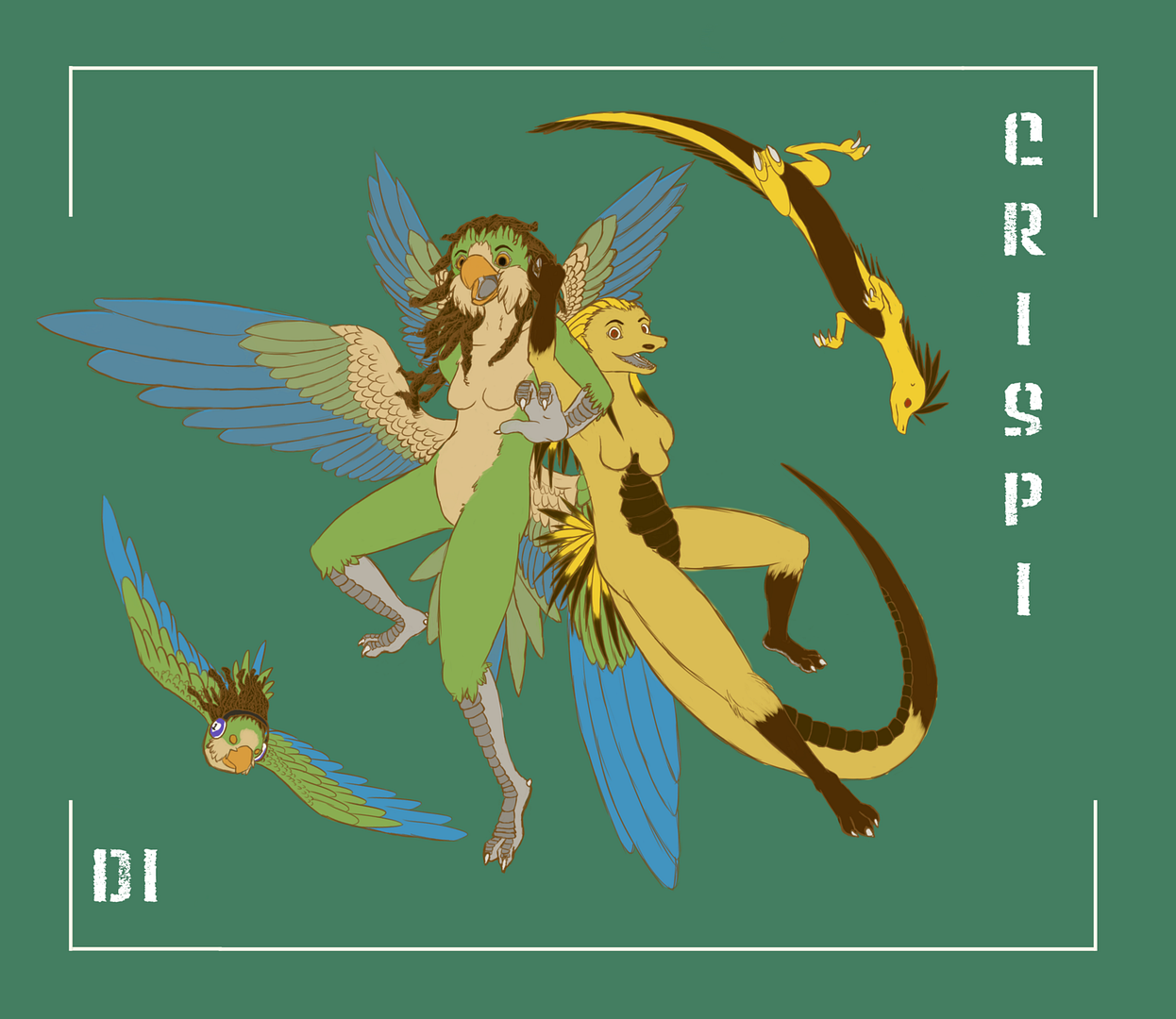 Dude, the way you did Crispi's twisting body in the feral shot is so perfect and so graceful! You lose points, however, because Di has only one arm and a green, third boob. ;-P