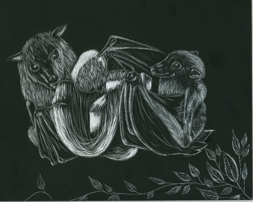 this is the scratch board piece i did for my design class, showing texture. i'm very very happy with this :3