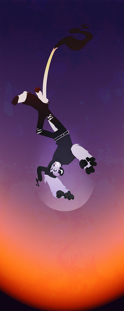 Which is also scary because now I have to figure out HOW the hell I'm going to come up with something just as good, but it probably can't be done since my level of art is nowhere close to yours /sobs. I just want to point out, also, your style is about the most flawless I've seen in my life. I'm envious ; - ;. But the way you draw fur, I luvs it. Can't take my eyes off his arms and ears.. Everything, in this piece is beautiful. The backgrounds colors combine well with his monochrome colors. The POSE is delicious I think it's so cool hsdhsjdh. <3 I love the way you draw faces, clothes, legs, feet. GUH I just love it all! You got him perfect, all I can say! ; u ; I'll be sure to finish my part soon.. just need to figure out what I'm going to do to make it awesome like this. I'll try my utmost best!!