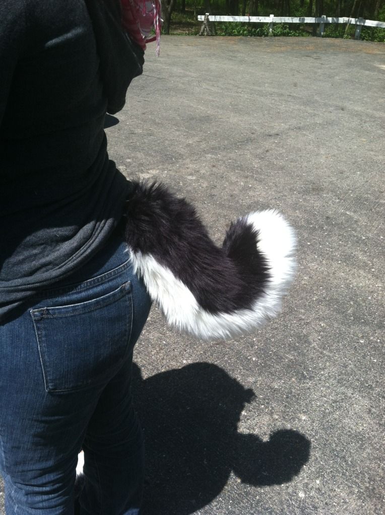 -The tail has a slight curve at the tip, and is lightweight and bouncy!! Fits on a slim belt for comfort! Double loop to stay put around the back beltloop on MOST pairs of pants.