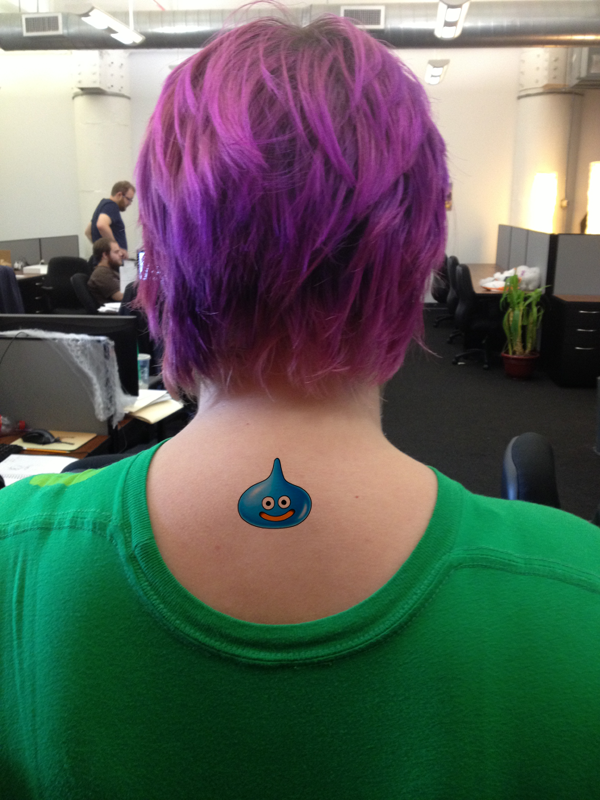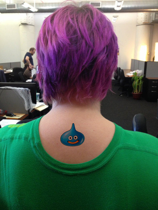 this is a tattoo i've been thinking about getting for a long time... just a simple slime on the back of my neck/back. Still kinda on the fence.. but I've had the idea now for like 5 years and am really thinking about doing it.....
