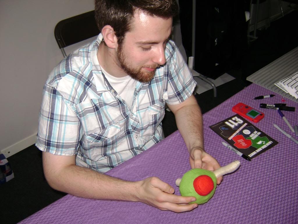 Oh what to say about this. Last Expo (May 2012) we got the meet the most awesome TomSka on the Saturday. As everybody loves Mine Turtle, and I just happened to have the right colors of fleece at hand, I decided to make a little plush Mine Turtle for TomSka which we delivered to him on the Sunday.